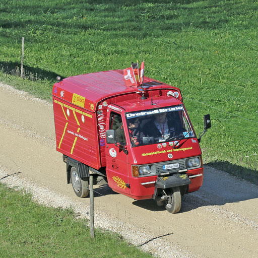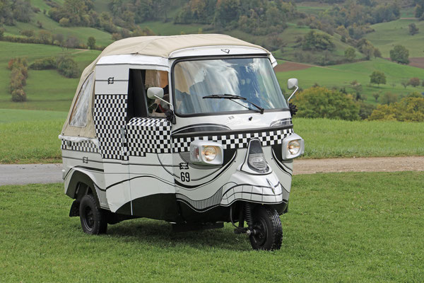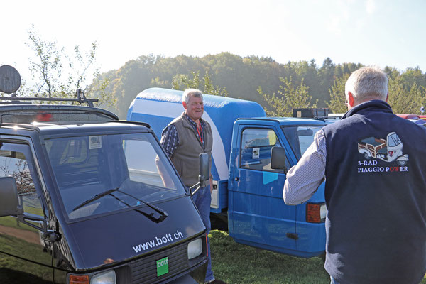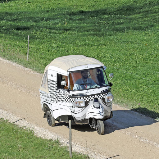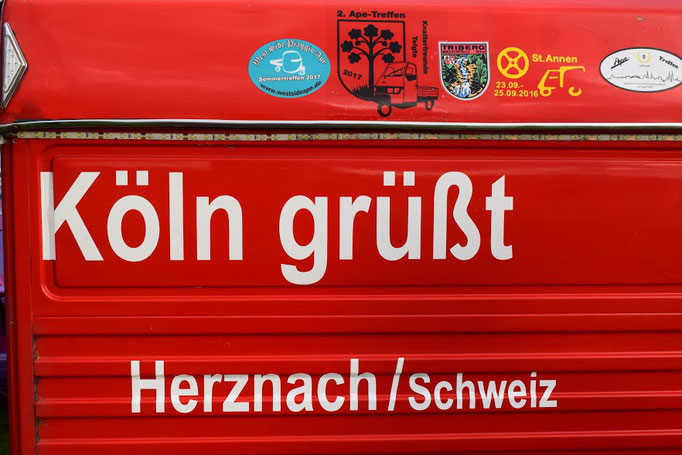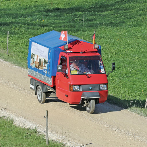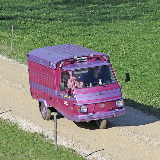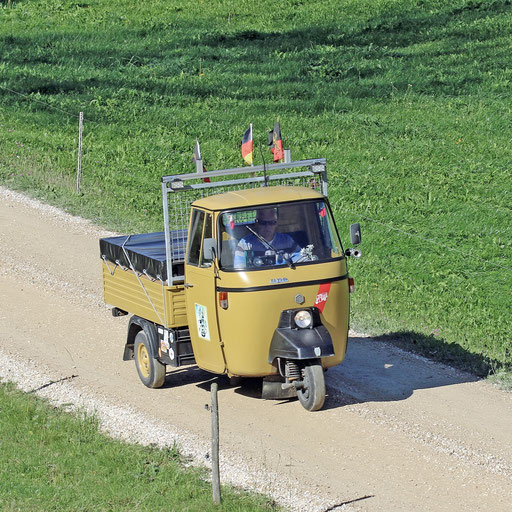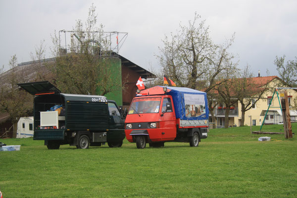 Das "Kölner Dreigestirn, Klaus, Monika und Uli, waren mit ihren unverwechselbaren Ape P2, im Anflug.