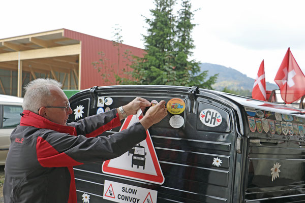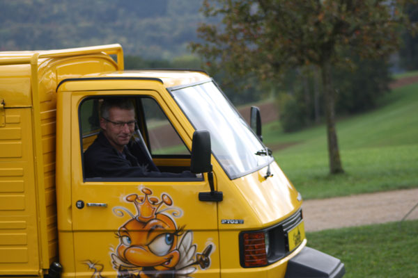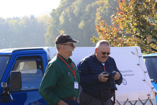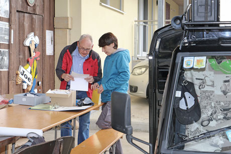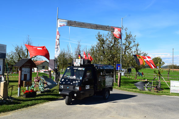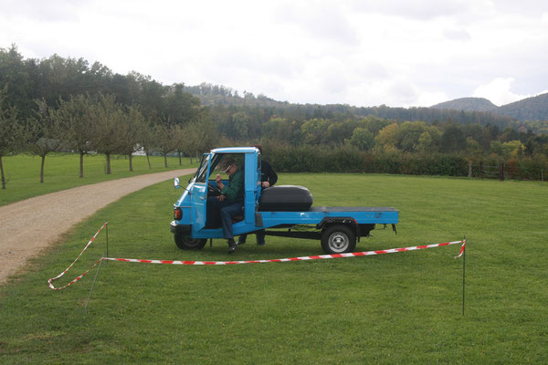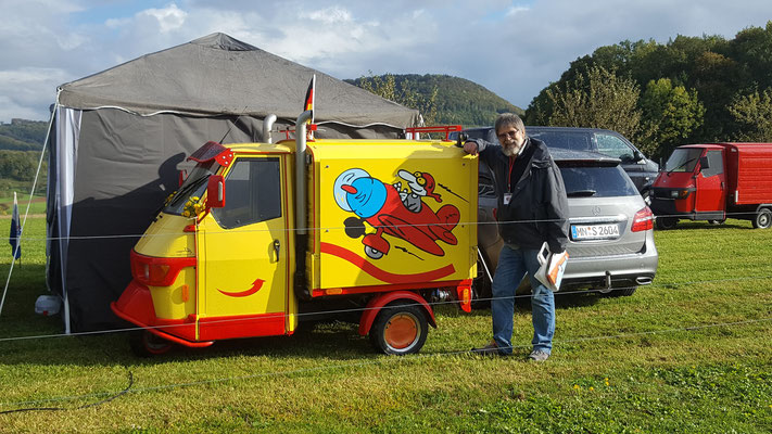 Freitag, 11.00 Uhr, wir richten unsere Anmeldung ein und der erste Aufkleber des Ape-Herbsttreffens, wird auf eine Ape geklebt.