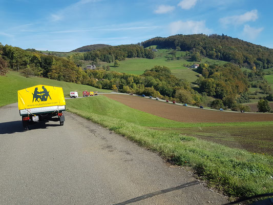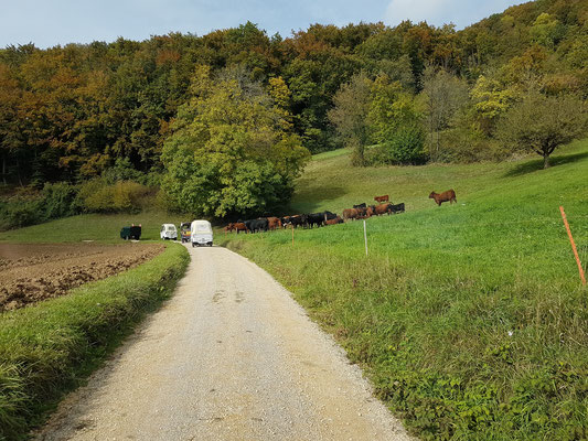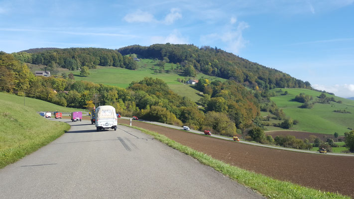 Durch die schöne herbstliche Juralandschaft geht es zum ersten Fotohalt.