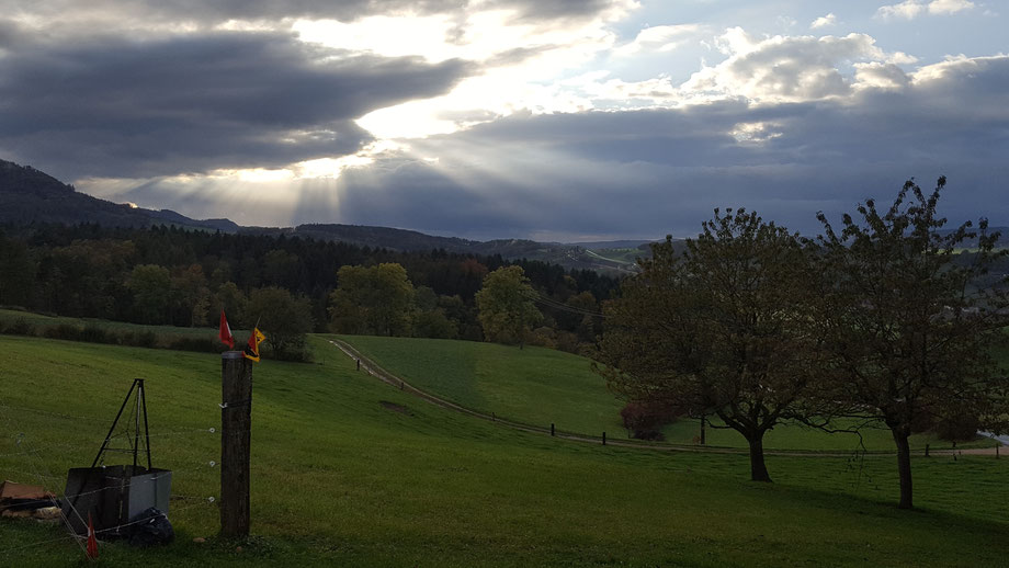 An diesen drei Tageen war alles zu haben, Regen, Sturm und ein damit verbundener Themperatursturz. Doch der Samstag fing mit einem wunderschönen Sonnenaufgang, der in einen sehr stimmungsvollen Morgennebel eingehült war, an. Eine Morgenstimmung, wie sie nur der Herbst hinzaubern kann.