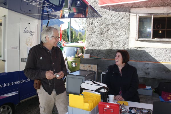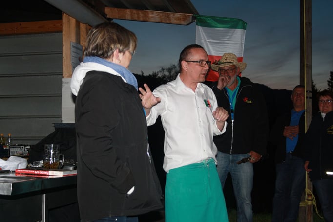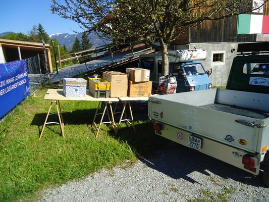 Offizieller Teil des Festes bildete die Begrüssung unserer Gäste. Es war uns eine grosse Freude, Günter Uhlig, den Autor des neuen Ape-Buches zu begrüssen. Er überreichte dem Verein ein speziell signiertes Buch, welches wir zu Gunsten unseres Vereins versteigern durften. Daneben wurde auch Ana, eine Ape-Fahrerin aus Italien, speziell begrüsst, die es trotz aller Umstände irgendwie geschaft hat, an unser Treffen zu kommen.