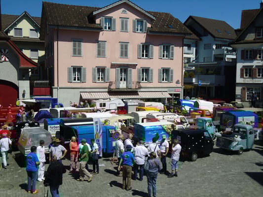 Eine schöne Ausfahrt mit einem Fotohalt und einer anschliessenden Präsentation der Fahrzeuge auf dem historischen Dorfplatz von Sarnen. Anschliessend ging es über eine Wendelkurve zu unserem Festplatz zurück.