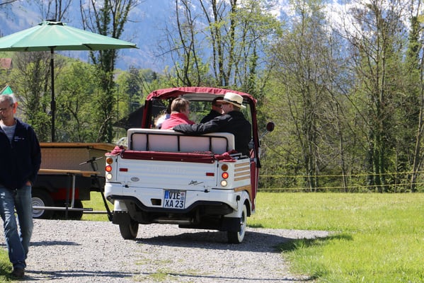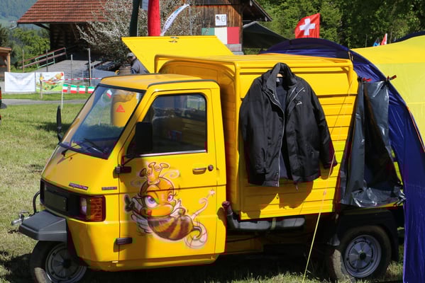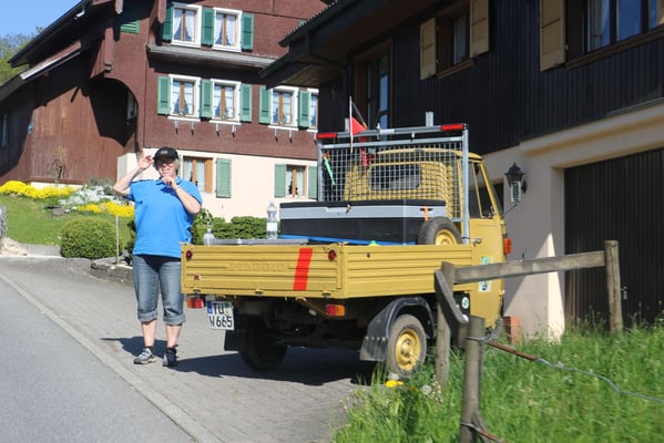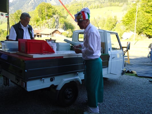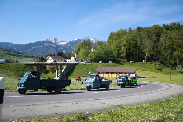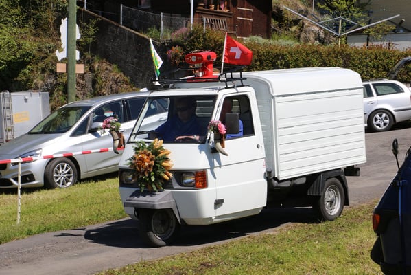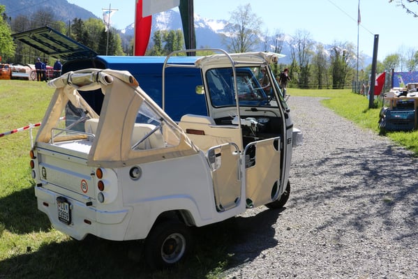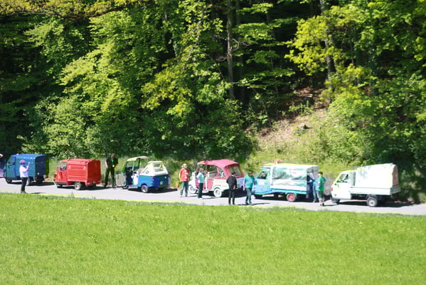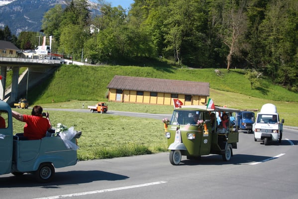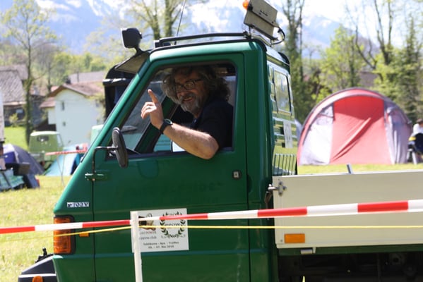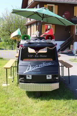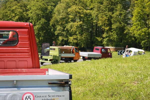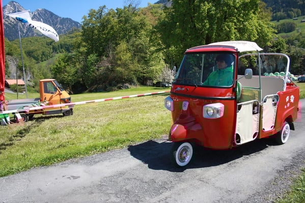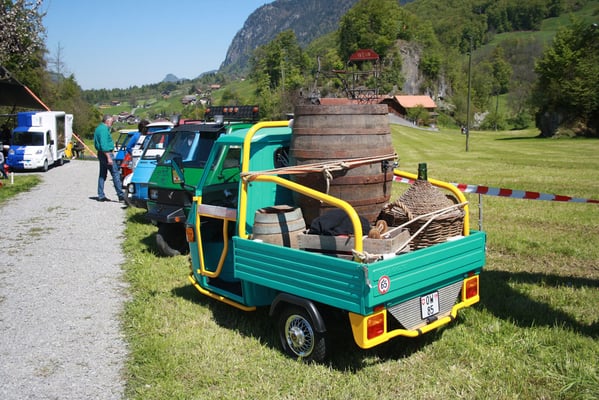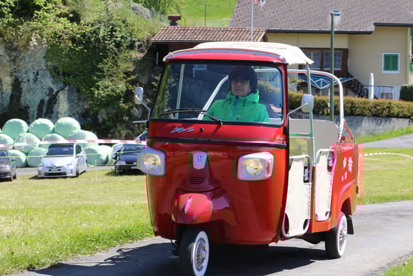 Ganz überrascht war am Schluss Hans, als er als der Ape-Fahrer mit dem kürzestesten Weg geehrt wurde. Er legte die unglaubliche Distanz von 2,6 Km zum Festplatz zurück.