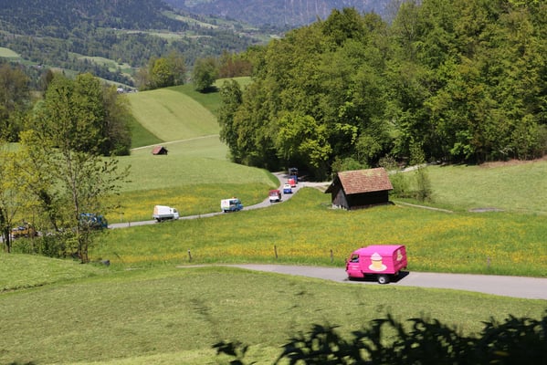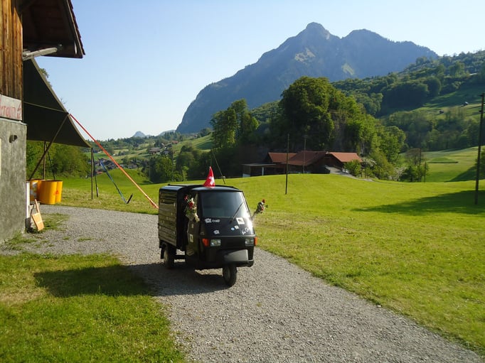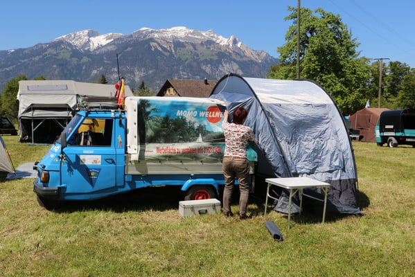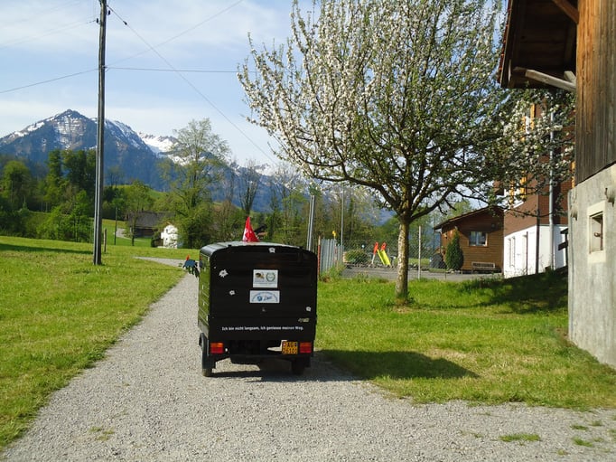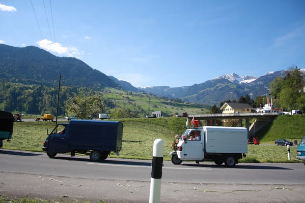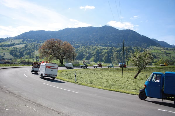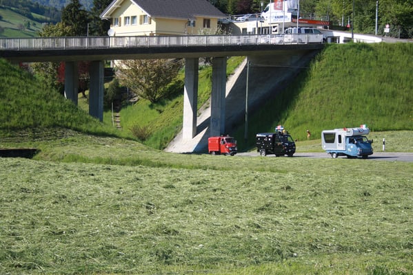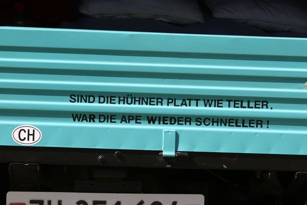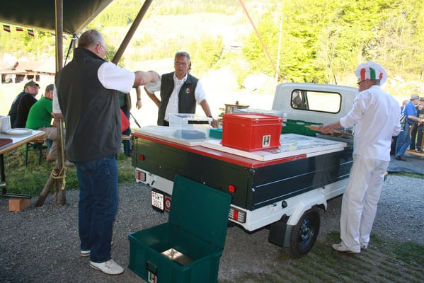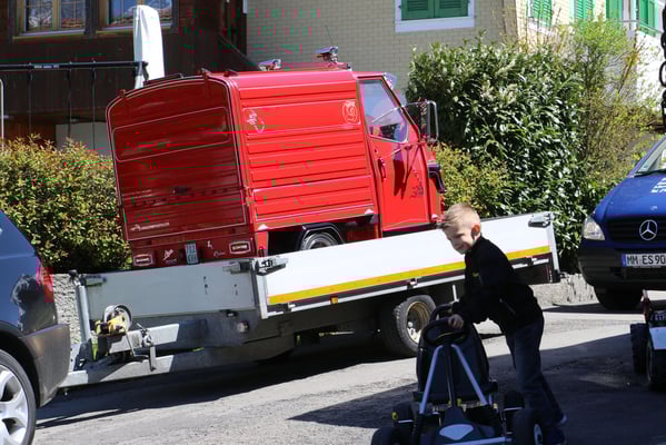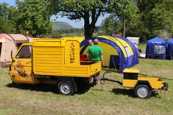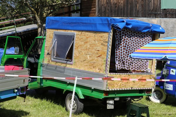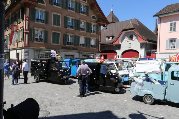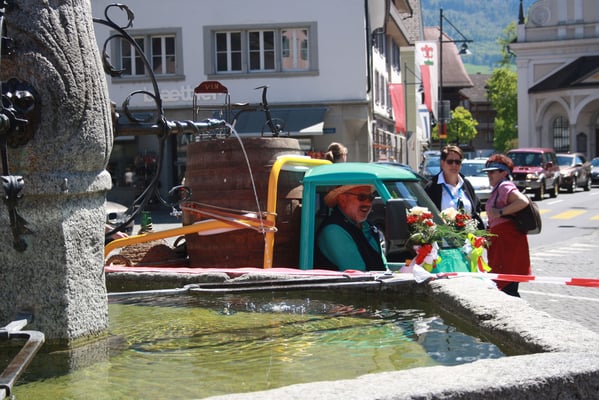 Ganz überrascht war am Schluss Hans, als er als der Ape-Fahrer mit dem kürzestesten Weg geehrt wurde. Er legte die unglaubliche Distanz von 2,6 Km zum Festplatz zurück.