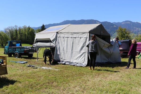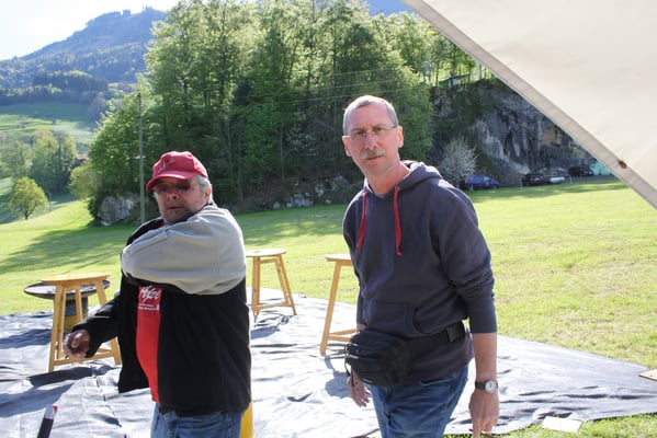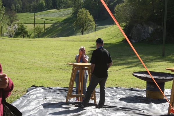 Nach tagelangen starken Regenfällen, wird das Wetter genau auf das Fest hin besser. Zwar ist es am Einrichtungstag noch windig und eher etwas kühl, doch die Sonne wärmt schon etwas und die Wiesen trocknen langsam.