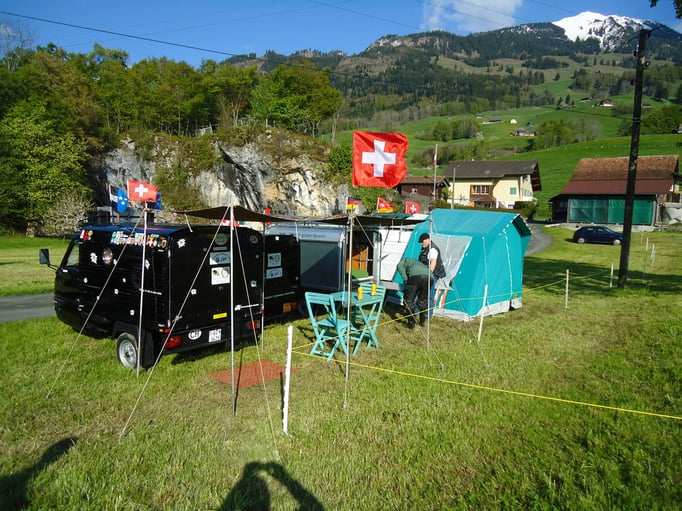 Drei Tage lang haben wir dies auch auf dem Festgelände in Kerns getan. Natürlich hat es neben der Pflege der Kameradschaft und ausgiebigen 2-Takt-Gesprächen noch weitere Attraktionen gegeben. So fand am Freitag eine grosse Ausfahrt mit gegen 80 Fahrzeugen und eine Präsentation der Fahrzeuge auf dem Dorfplatz in Sarnen statt. Am Abend verwöhnte uns Stefano, mit seinem Pizza Moblie Lucerna - Team, mit ausgezeichneten Pizzas.