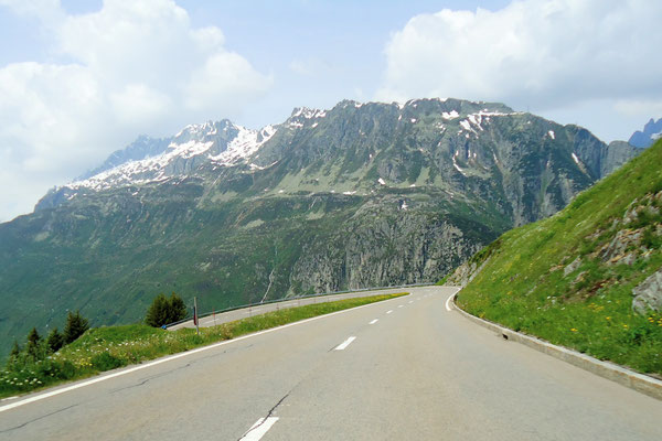 geradeaus zum Furkapass und nach links zum St. Gotthardpass und ins Tessin.