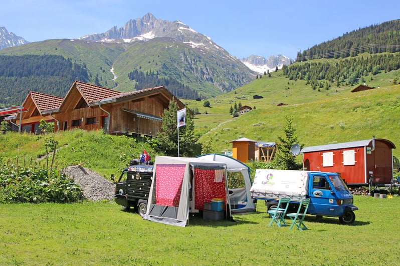 gelegenen Camping Viva in Rueras/Sedrun. Am Vorderrhein in einer schönen