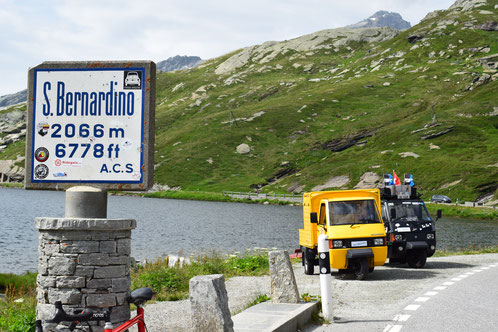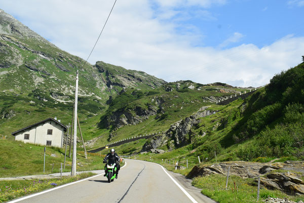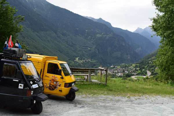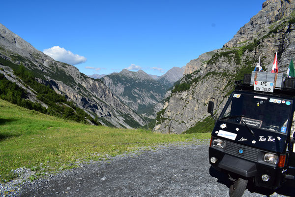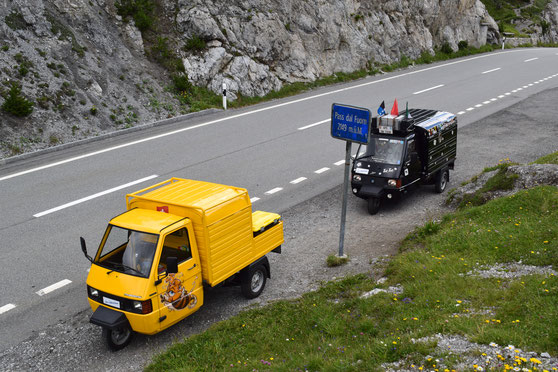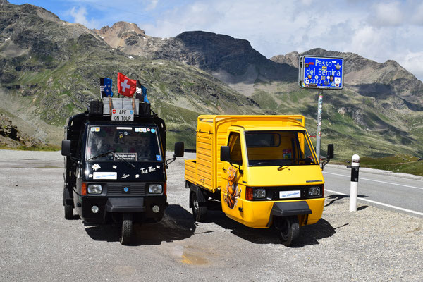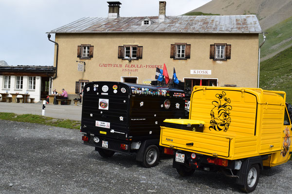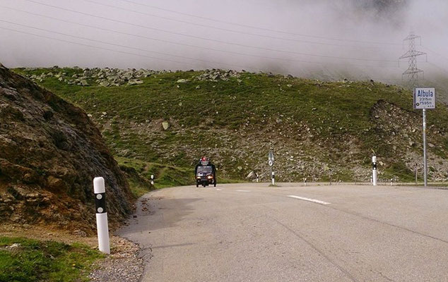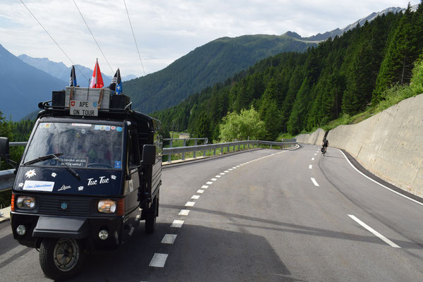 Wo gegen der Albulapass zwar auch gut ausgebaut ist, jedoch an einigen Stellen eine etwas schmale Streckenführung aufweist. Dafür hat es am Albula sehr wenig Verkehr. Also ein idealer Ape-Pass.