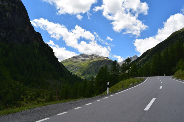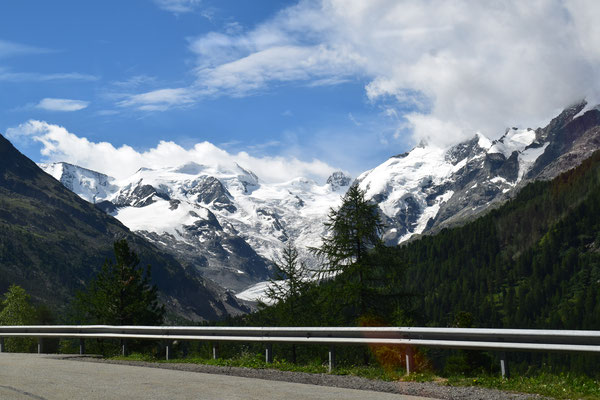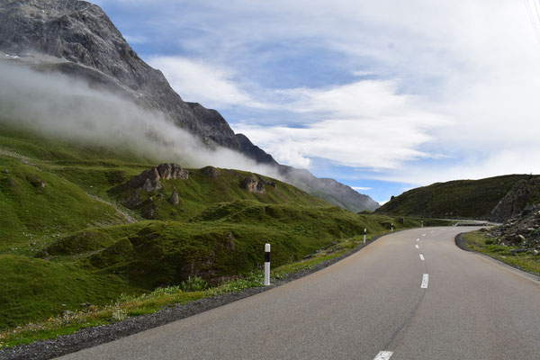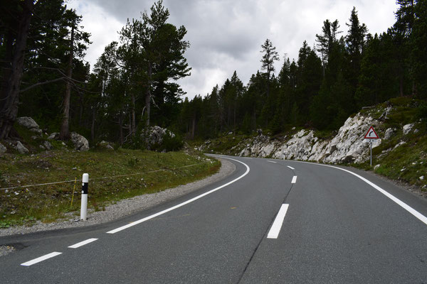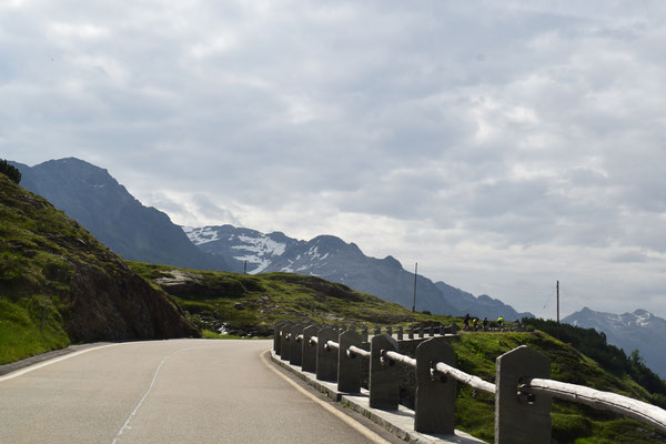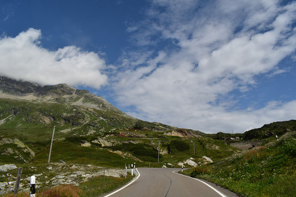 Und mit dem Schwung von der Abfahrt, geht es gleich wieder hoch auf den Berninapass.