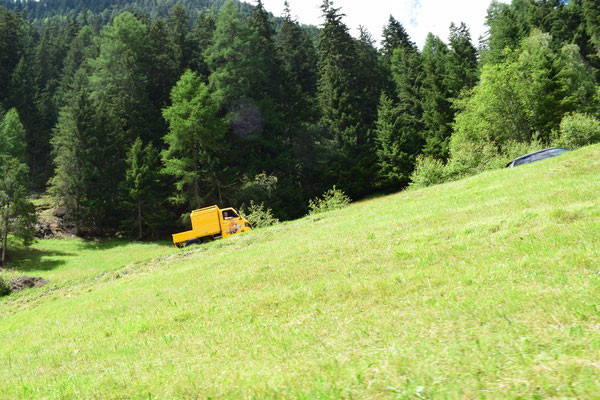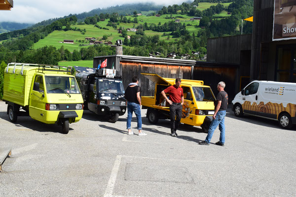 Die Ape von Bruno, ist viel leichter und hat etwas mehr Leistung als meine. Somit geht der Bergpreis immer an Bruno. Mit einem 2-Takter muss man am Berg schonend und optimal fahren, um ihn nicht zu überhitzen. Des-