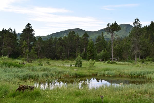 Die Abfahrt von Glaubenbergpass, mit seiner schönen Hochmoorlandschaft,