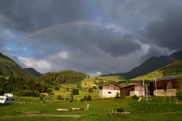 Morgenstimmung auf dem Campingplatz. Zwar ist der Regenbogen sehr schön,