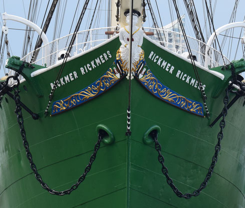 Fangen wir doch gleich mit der Rickmer Rickmers, an. Sie lief 1896 in Bremerhaven vom Stapel. Die erste Reise führte es nach Hongkong. Es folgten zwölf Rundreisen, meist nach Amerika oder über den Fernen Osten. 1904 verlor sie in einem Orkan den Kreuzmast und konnte nur noch mit Mühe den Hafen von Kapstadt erreichen.