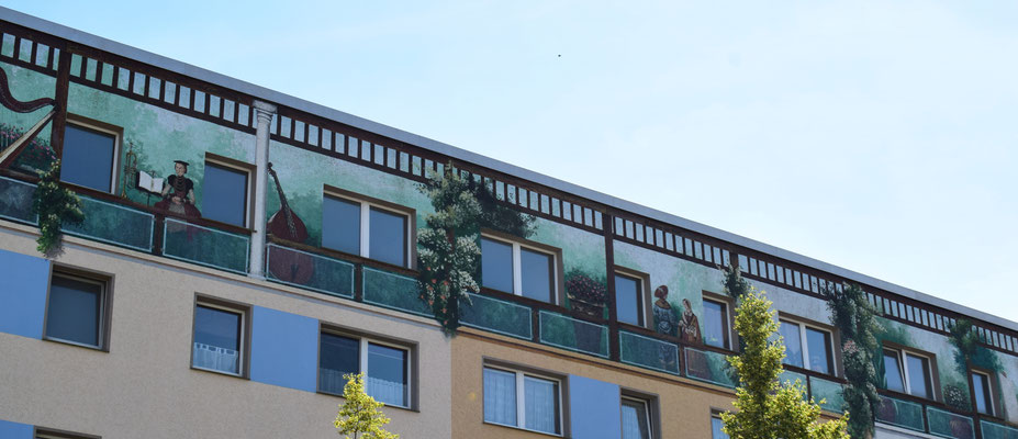 Und noch was kann man in Wittenberg entdecken, die Plattenbauten von damals, die gibt es auch in Farbe.