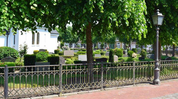 anders ist, hier bildet nicht ein Marktplatz das Zentrum, sondern der Friedhof.