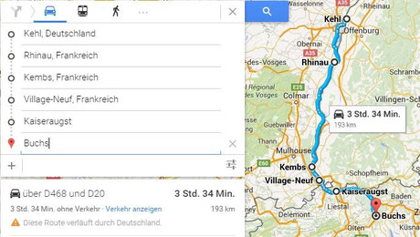 Kehl (D) - Rhinau (F) - Weil a. R. (D) - Buchs (CH)