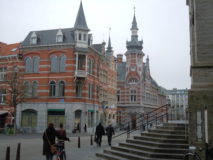 Das Rathaus steht am Grossen Markt (Grote Markt) direkt gegenüber der "Sint Pieterskirche". Vorbild war ursprünglich das Brüsseler Rathaus gewesen. Die im 19. Jahrhundert in die bereits vorhandenen Nischen eingesetzten Statuen sollten das Vorbild an Figurenreichtum übertreffen.