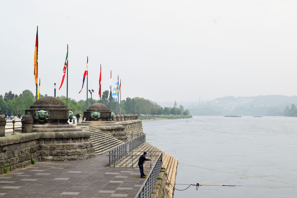 zum Deutschen Eck in Koblenz. Heute ist das Deutsche Eck ein Denkmal für die Deutsche Einheit.