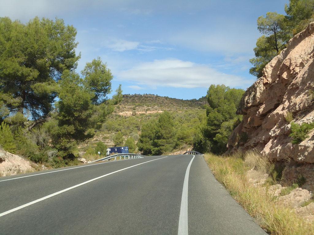 Aus diesem Grund gibt es auch keine Bilder von der Etappe zwischen Calpe und Torreblanca. Allerdings hatte ich Torreblanca noch ein schönes Erlebnis. Dort übernachtete ich in einem Motel direkt an der Landstrasse. Mein Tuc Tuc war auf dem Parkplatz umgeben von unzähligen Satteschleppern. Es wäre jedoch falsch zu glauben, dass es dort nicht beachtet wurde. Tuc Tuc war einfach nur der Star! Die Brummifahrer wollten einfach alles sehen, von der Kabine über den Kasten bis zum Motor. Als ich am Morgen in aller Frühe losfuhr wurde ich mit einem Hupkonzert verabschiedet.