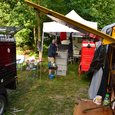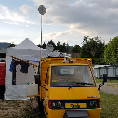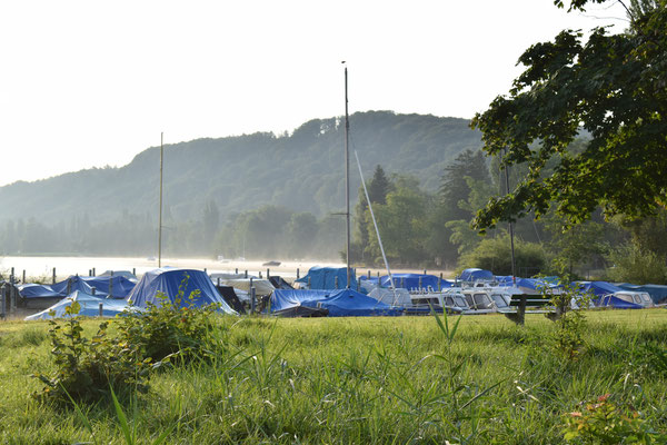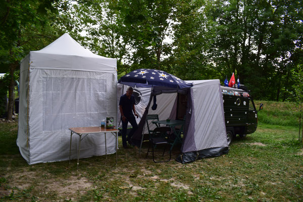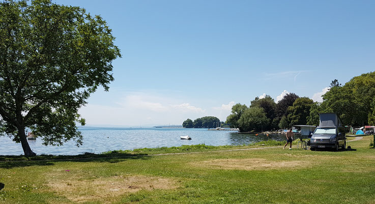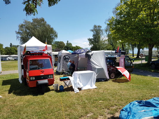 Noch ein kurzes Stück fahren und der Campingplatz in Yvonand ist erreicht. Was wir beim einrichten nicht wussten, hier fand am Abend noch eine Wasserdichtigkeitsprüfung unserer Zelte statt, natürlich kostenlos.