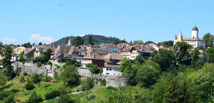 Das historische Städtchen erstreckt sich über einen Geländevorsprung am Rande des Jurafussplateaus,
