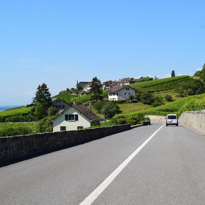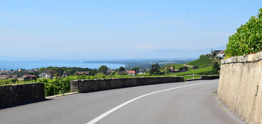 Eine aussichtsreiche Strasse führt von Aubonne durch Weinberge und kleine Dörfer nach Rolle.