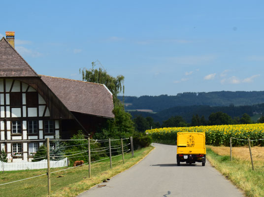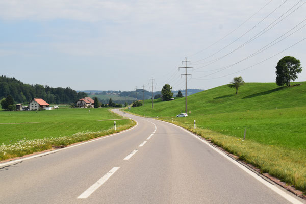 Von Blonay an geht es zwar immer noch bergauf, doch man kann meinstens im vierten Gang fahren.