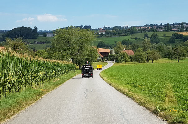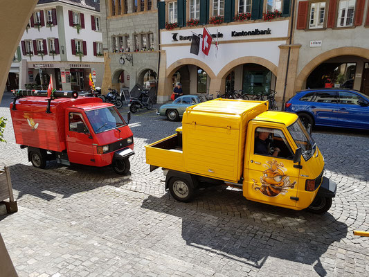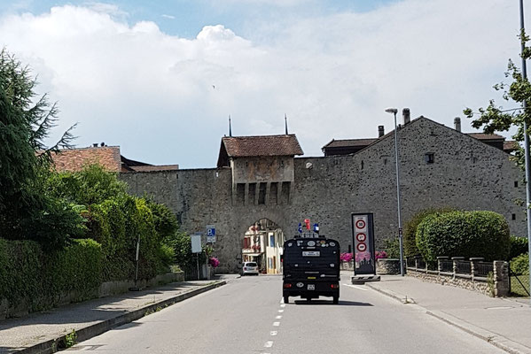 Das mittelalterliche Zähringerstädtchen mit seiner Ringmauer und der historischen Altstadt von nationaler Bedeutung ist wirklich einen Stopp wert. Nur eben an einem schönen Sonntag in der Ferienzeit, ist es nicht ganz einfach, dort legal anzuhalten oder mit drei Fahrzeugen zu parkieren. So wurde aus dem geplanten Kaffeehalt, nur ein schneller Fotohalt.