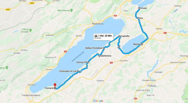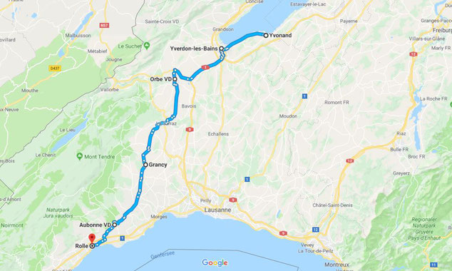 Auf kleine Nebenstrassen geht es vorbei an Yverdon-les-Bains, Orbe, Grancy nach Aubonne.