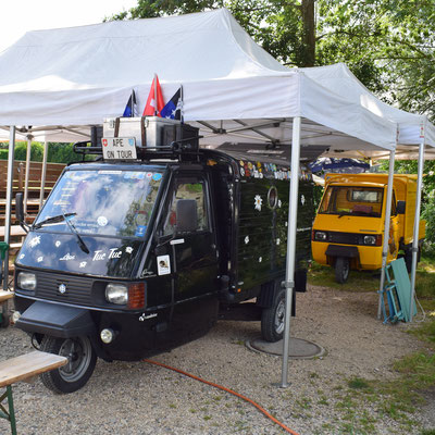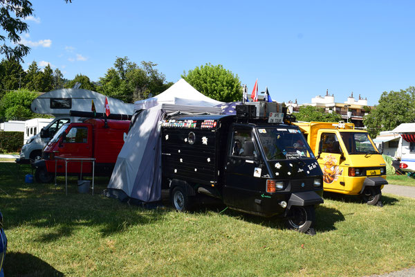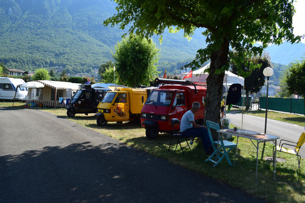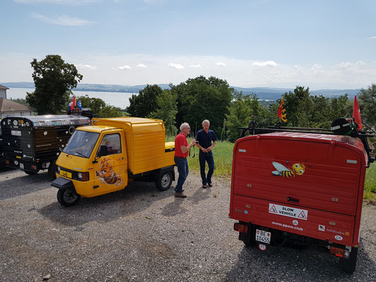 Als wir gegen Vinelz fuhren, sahen wir auf der Seeseite einen Campingplatz. Wie sich aber bald herausstellte war es ein reiner Dauercamping, als wir jedoch den Retourgang einlegen und wenden wollten, geschah etwas, was nur Ape-Fahrern passiert. Plötzlich winkte uns jemand vom Campingplatz zu sich. Wie sich herausstellte war es der Betreiber.