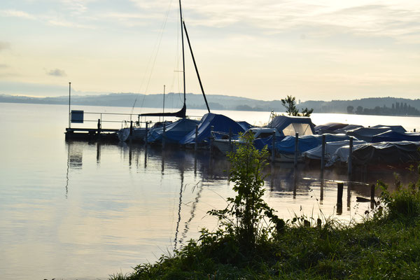 Ich persönlich finde, die frühen Morgenstunden sind die schönsten Momente am See. Meine beiden Kollegen hörten derweil noch etwas ihren Kissen zu. Doch kaum waren die beiden auf, war unser Lager schnell aufgeräumt.