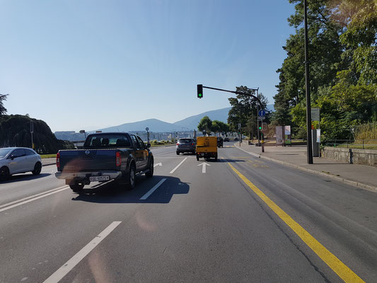 Die heutige Etappe war eine Geschichte für sich. Am Anfang noch ganz schön, hier die Fahrt durch Nyon.