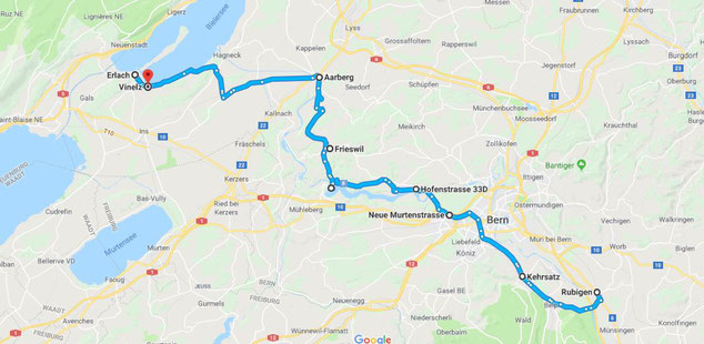 Für mich 165 Km, da ich ja noch zum Treffpunkt nach Rubigen musste.