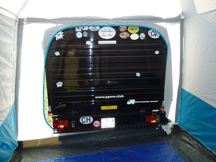 Es ist einfach das Beste das man als Ape-Fahrer haben kann. Klein, handlich, einfach aufzustellen und das für mich Wichtigste, man kann rückwärts hineinfahren und so den Wohnraum des Ape-Reisemobil verdoppeln.
