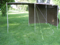 Gebraucht habe ich acht Ringschrauben, einen Edelstahlstab, und natürlich Zeltstangen, Heringe und Abspannseile. Wie das Ganze gebaut wurde könnt ihr selber schauen.